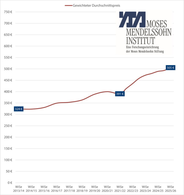 Vor zehn Jahren waren es noch 339€, heute sind es 480€, die laut der aktuellen Studie des Moses-Mendelssohn-Instituts für Zimmer in WGs mit 2-3 Personen in Tübingen bezahlt werden müssen. Typischerweise sind das die Wohnungen, die für Studierende in Betracht… Weiterlesen →